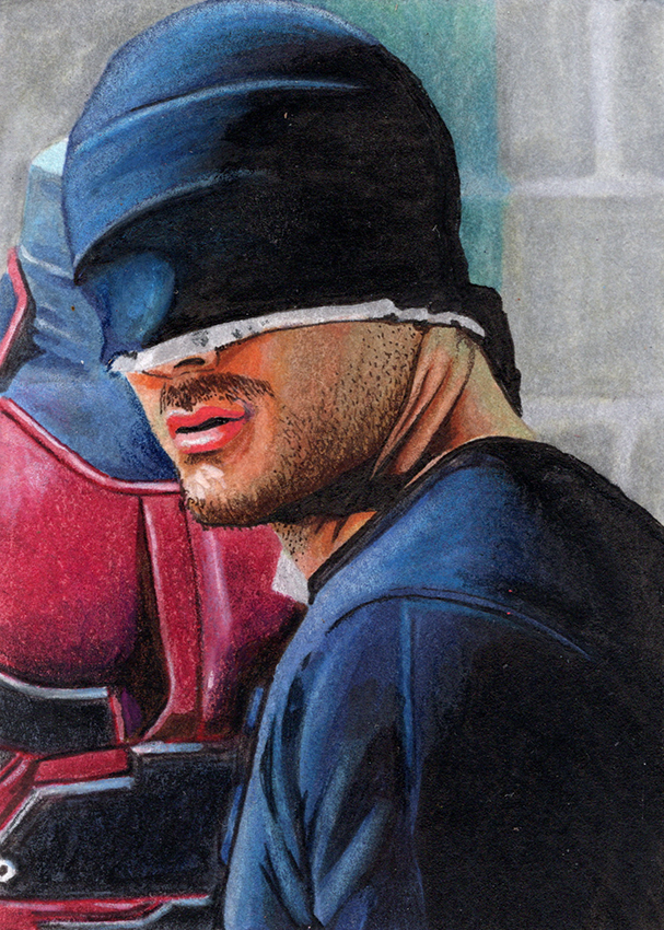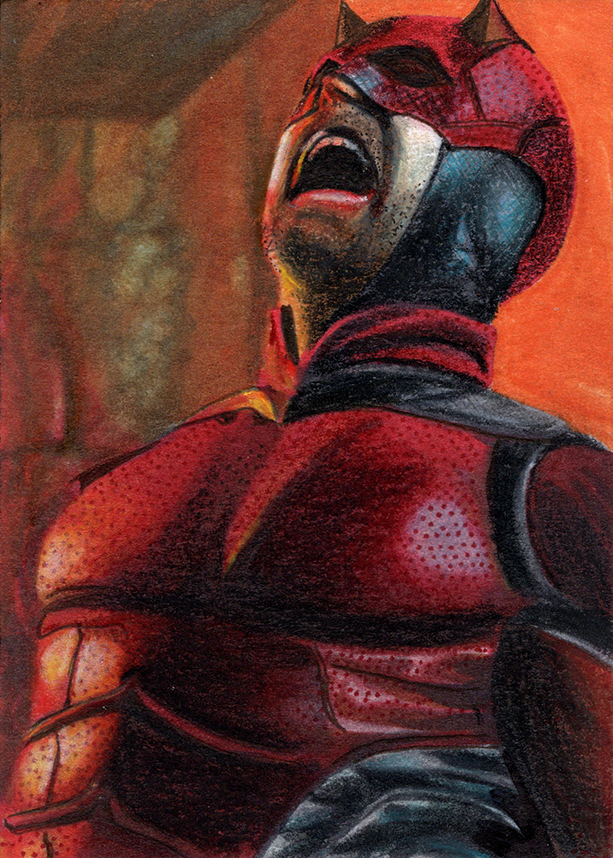 Traditional illustration produced on a standard 2.5 X 3.5 inch trading card. Illustration will be produced primarily with Copic markers and colored pencils.