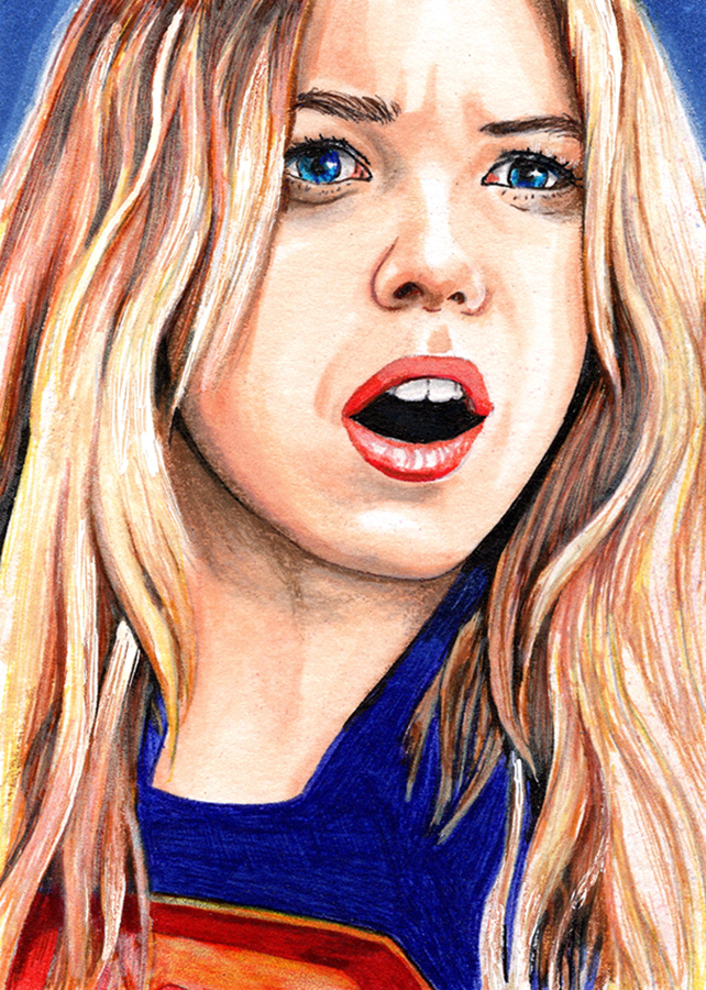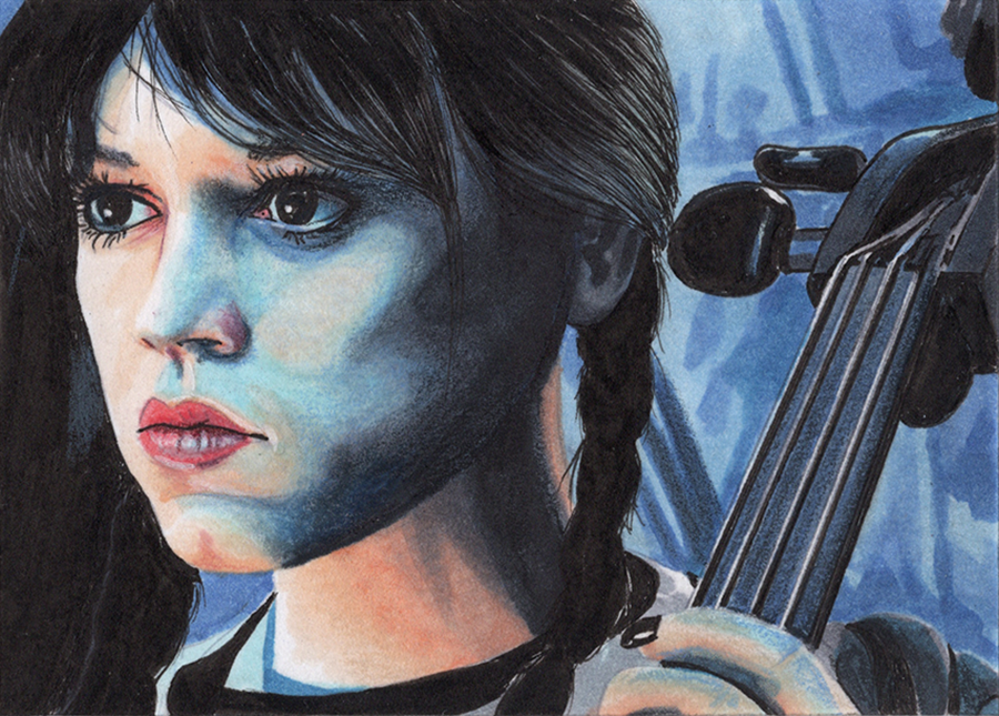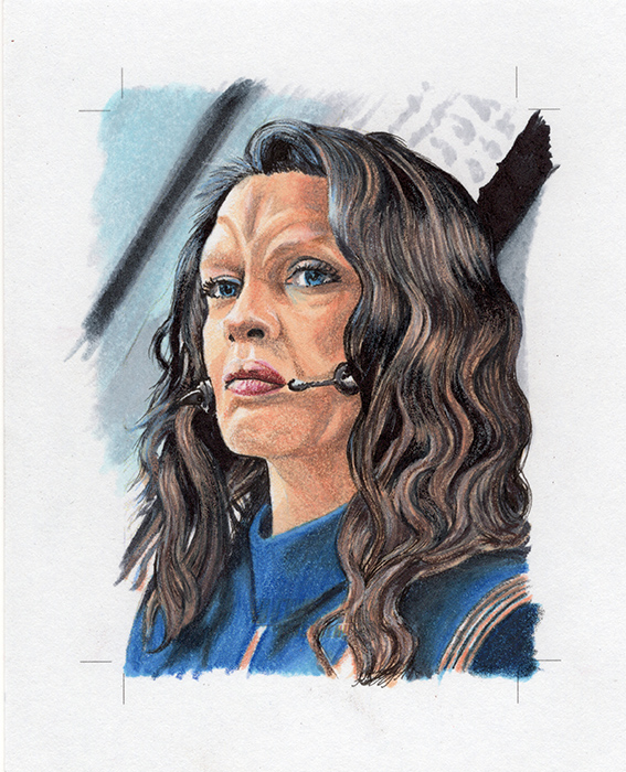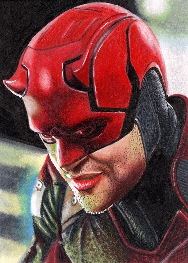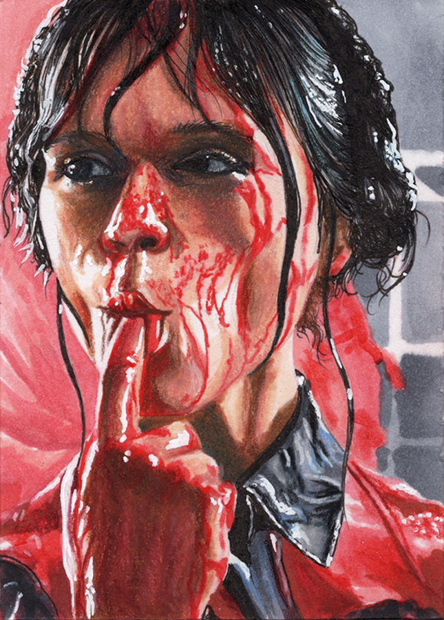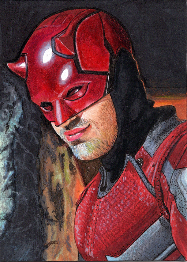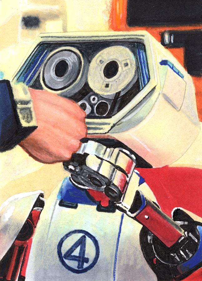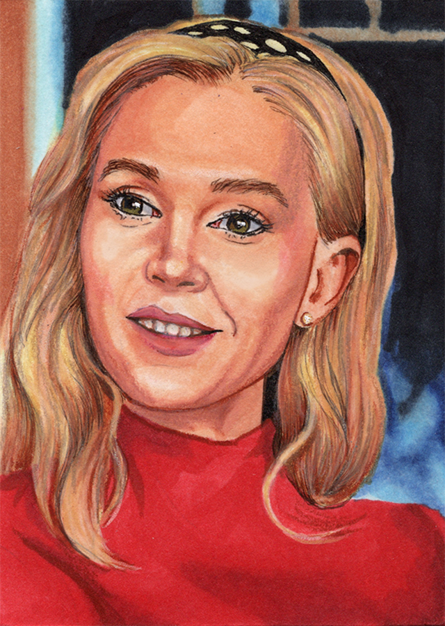 Traditional illustration produced on a standard 2.5 X 3.5 inch trading card. Illustration will be produced primarily with Copic markers and colored pencils.