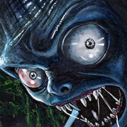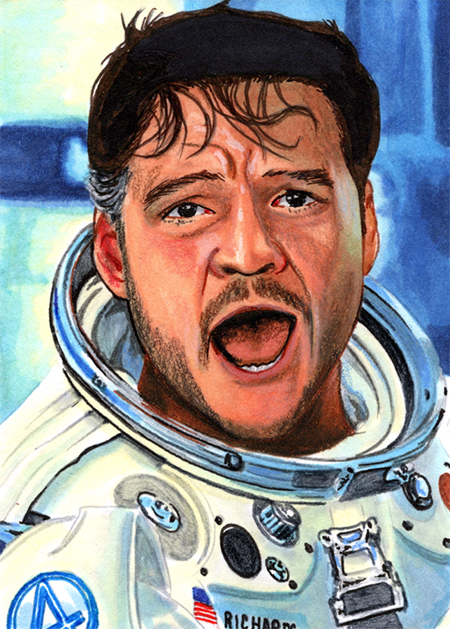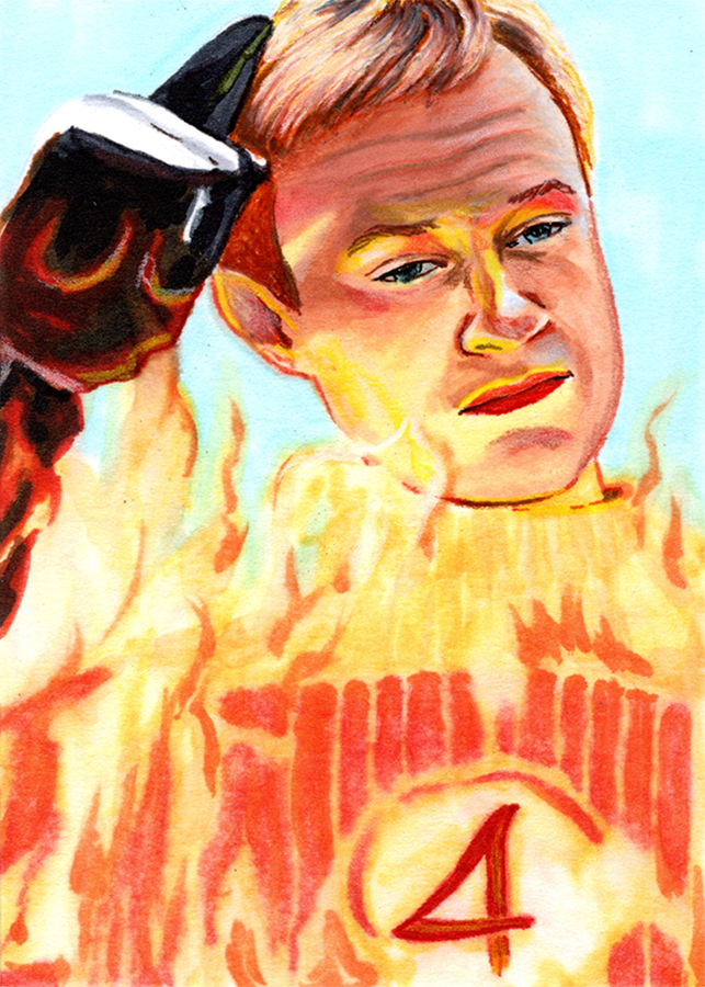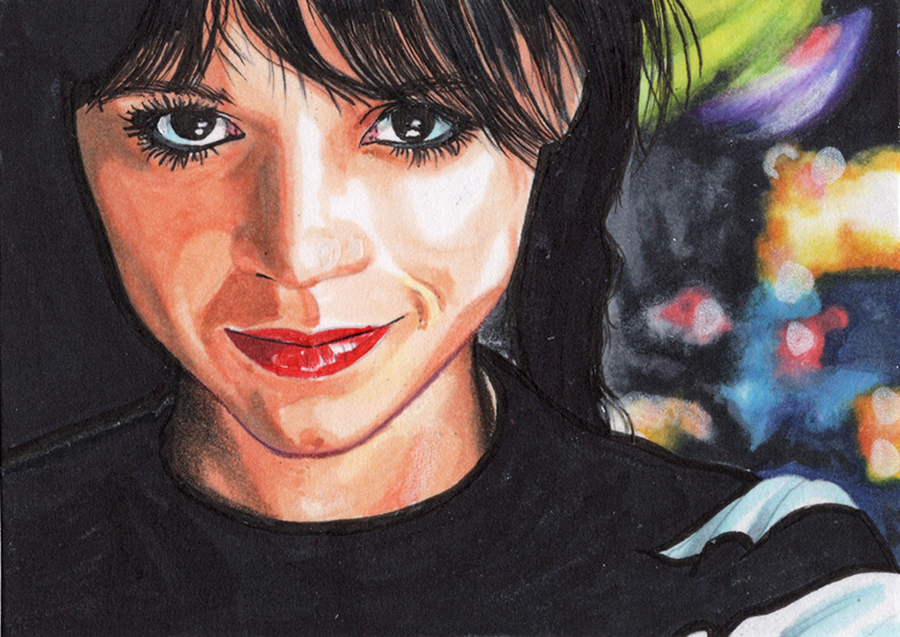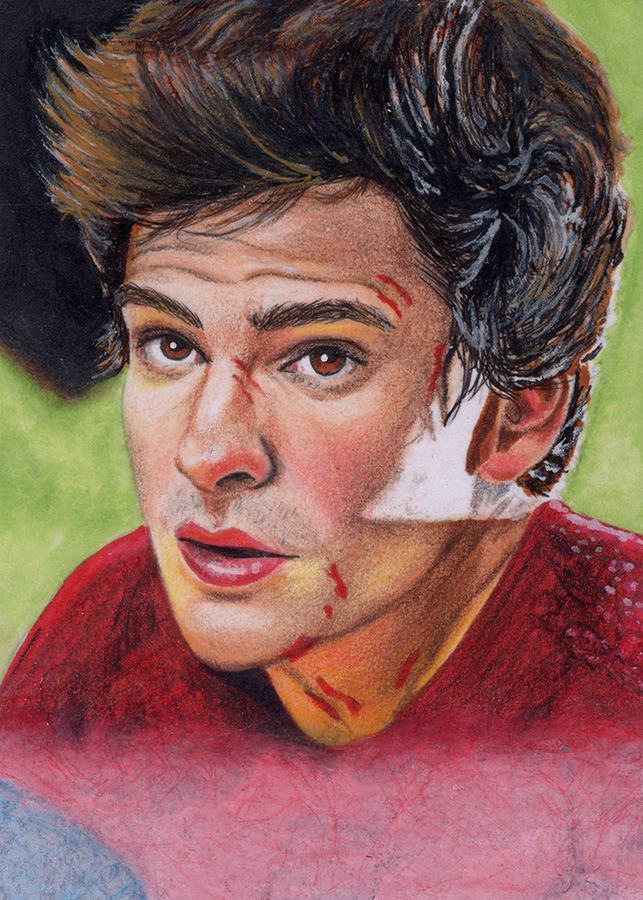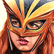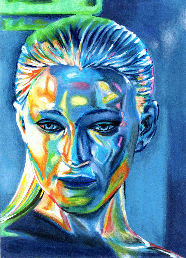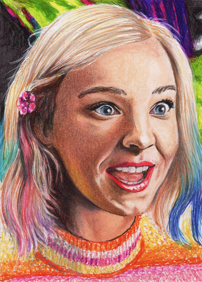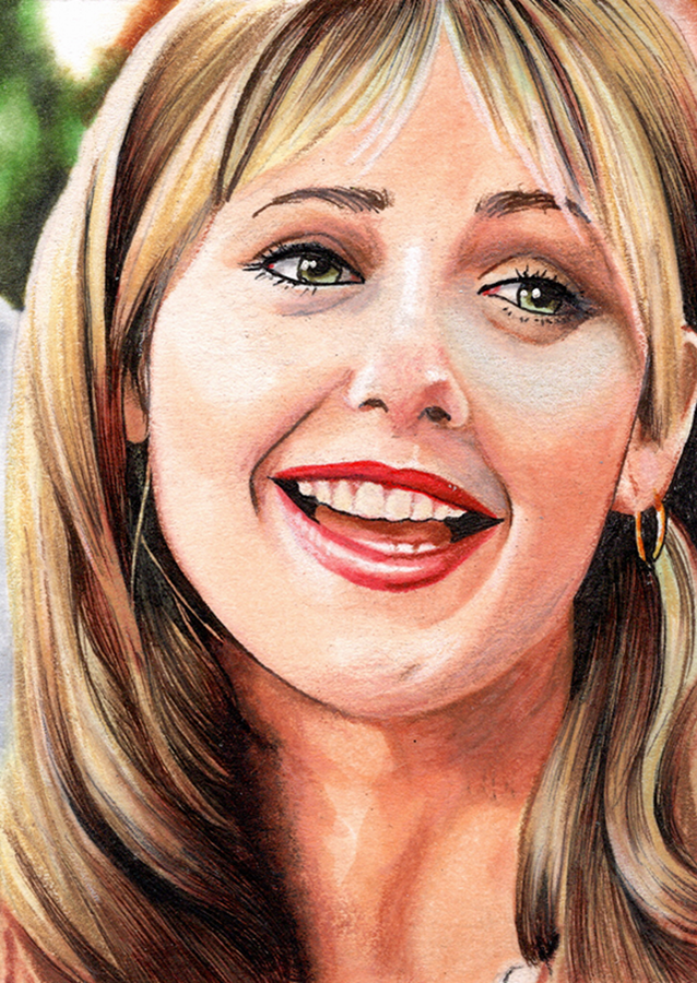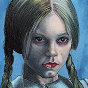 Traditional illustration produced on a standard 2.5 X 3.5 inch trading card. Illustration will be produced primarily with Copic markers and colored pencils.